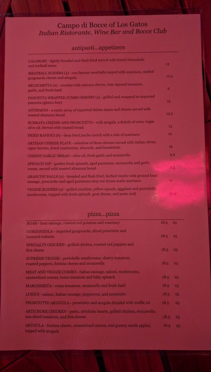 Step into Campo di Bocce of Los Gatos, a charming Italian restaurant that elevates dining into an exciting experience. Nestled conveniently at 565 University Ave in Los Gatos, this vibrant eatery spreads its warmth through the mingling aromas of authentic Italian cuisine and the lively sounds of laughter and clinking glasses.